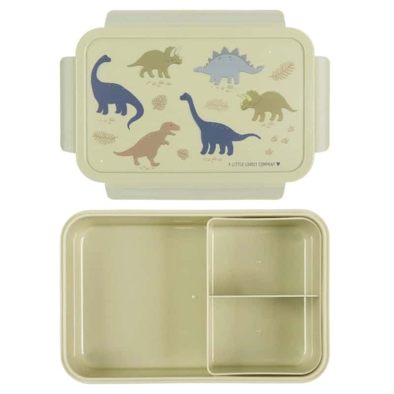 Deze bento lunch box van A Little Lovely Company heeft een luchtdicht click & close deksel en het uitneembaar bento bakje zorgt voor een perfect georganiseerde lunch. De brooddoos heeft een leuke print in het thema dino. Een ideale trommel voor een verse en gevarieerde lunch op school of onderweg. De lunch box is eenvoudig met de hand af te wassen en te combineren met de bijhorende drinkfles en snackdoosjes. Zo maak je de set compleet!