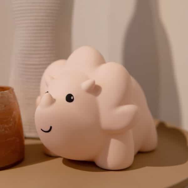 Meet Juliette, het vriendinnetje van Jeroom, een schattige dino die jouw kindje een veilige nachtrust gaat bezorgen. Deze dino is nieuw in het assortiment van Atelier Pierre. Heeft jouw kindje ’s avonds ook graag een lichtje voor het slapengaan? Dan biedt dit dino LED lampje de ideale oplossing. Het lampje is gemaakt uit kwalitatief siliconen, waardoor het heel zacht aanvoelt en niet breekbaar is. Juliette heeft op haar rug kleine hartjes, die een projectie op het plafond geeft, zodat je een magische sfeer in de baby- of kinderkamer brengt.