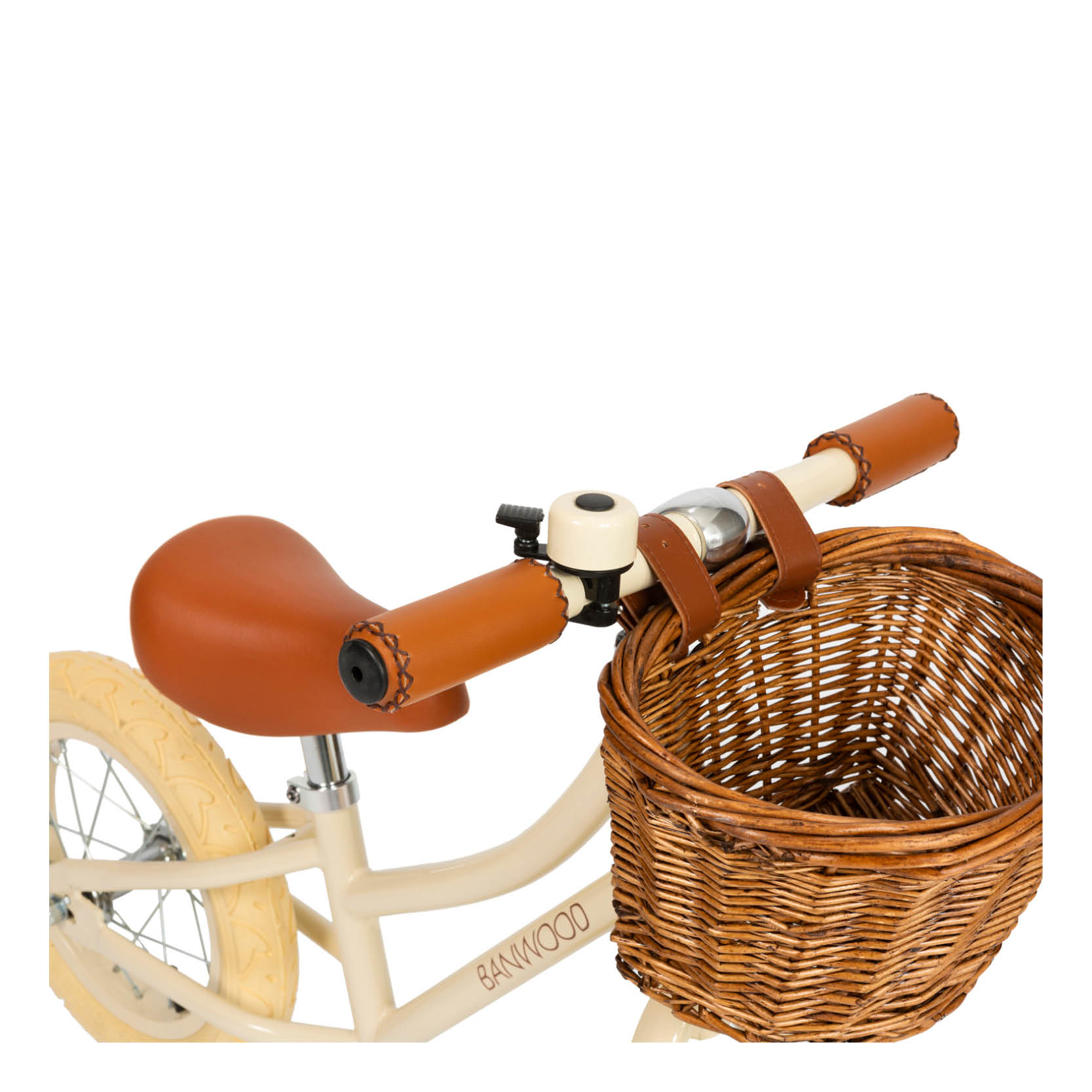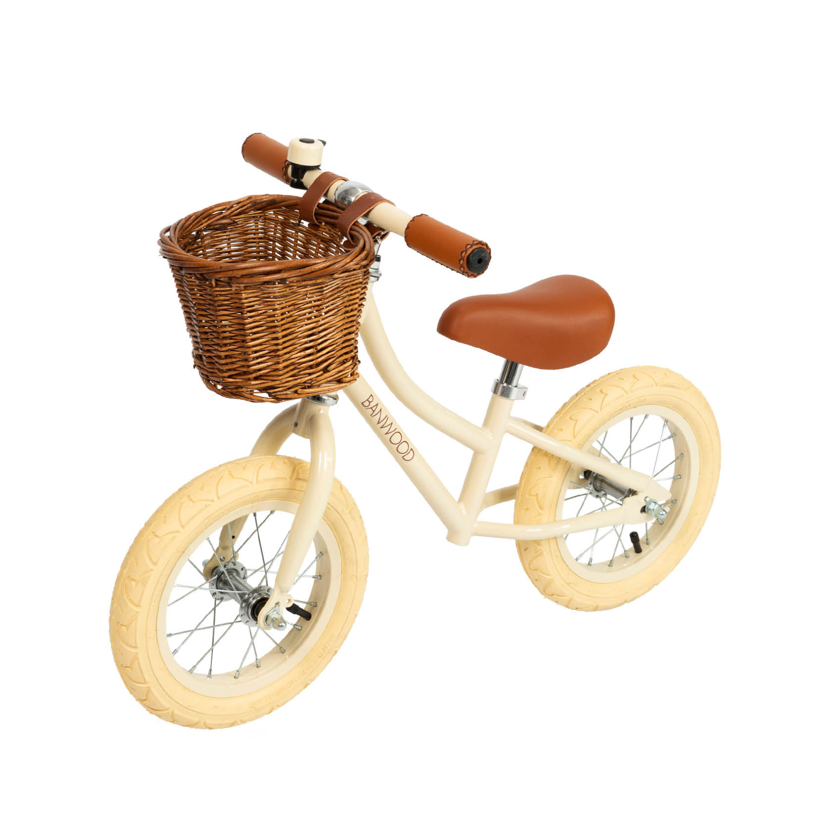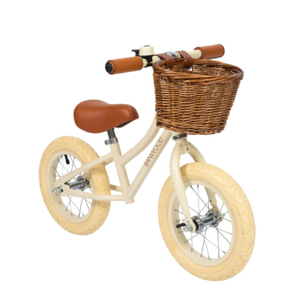 De cream kleur geeft deze loopfiets een zachte, tijdloze uitstraling.