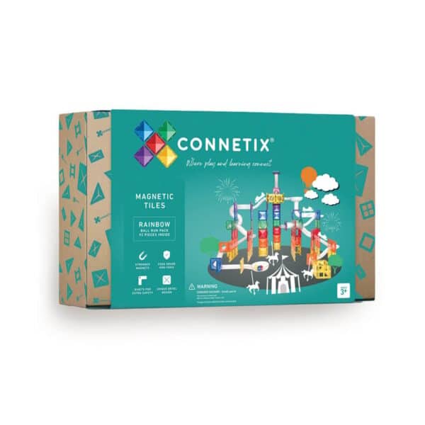 Met de magnetische tegels van Connetix laat je kinderen eindeloos creatief bouwen. Deze Ball Run set is perfect om zelf een knikkerbaan te ontwerpen en in elkaar te zetten. Of je nu kiest voor een hoge toren met kronkelende buizen of een lange baan vol bochten en hindernissen – alles is mogelijk!