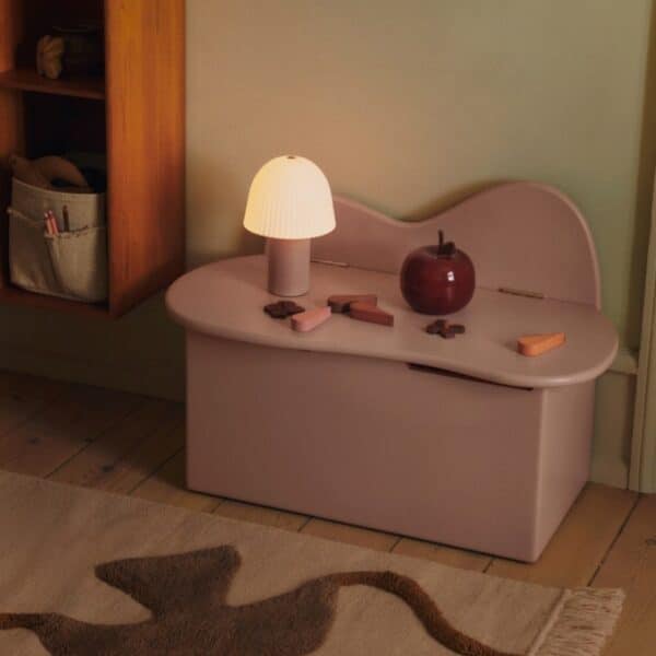 Breng een vleugje speelse poëzie in de kinderkamer met het charmante Slope Opbergbankje van Ferm Living