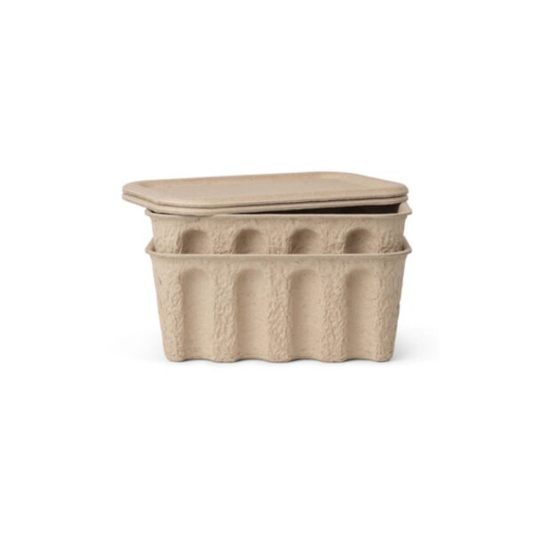 Op zoek naar een slimme én mooie manier om kleine spullen op te bergen? Deze Paper Pulp Boxen van Ferm Living zijn gemaakt van 100% gerecycleerd papierpulp en zijn een lichtgewicht, ecologisch alternatief voor plastic opbergdozen. De set bestaat uit 2 stapelbare dozen met deksel, ideaal voor alles van knutselmateriaal tot sokken of kleine speelgoedjes.