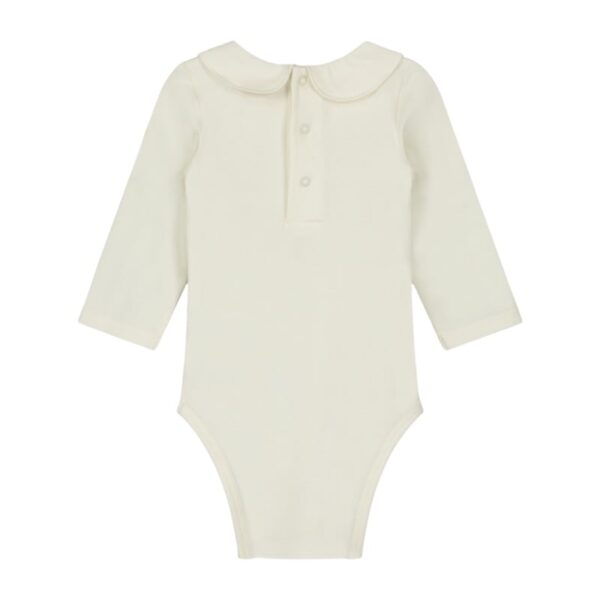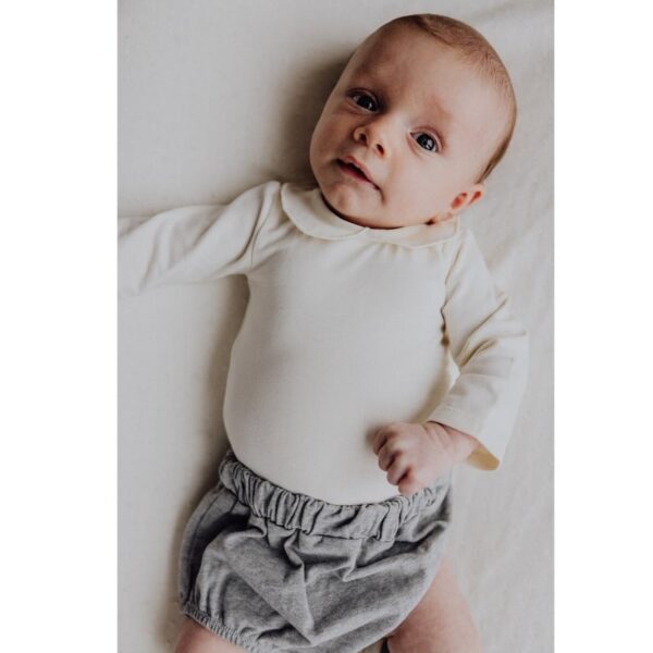 Met deze body van Gray Label maak je de look van je baby compleet. Deze romper met kraag is gemaakt van de zachtste biologische katoen met een beetje elestan. Hierdoor past het perfect. De romper heeft een kraagje met overlock afwerking van de randen, een drukknoopsluiting tussen de beentjes en een drukknoopsluiting op de rug. Het logo is op de achterzijde geborduurd, net onder de nek.