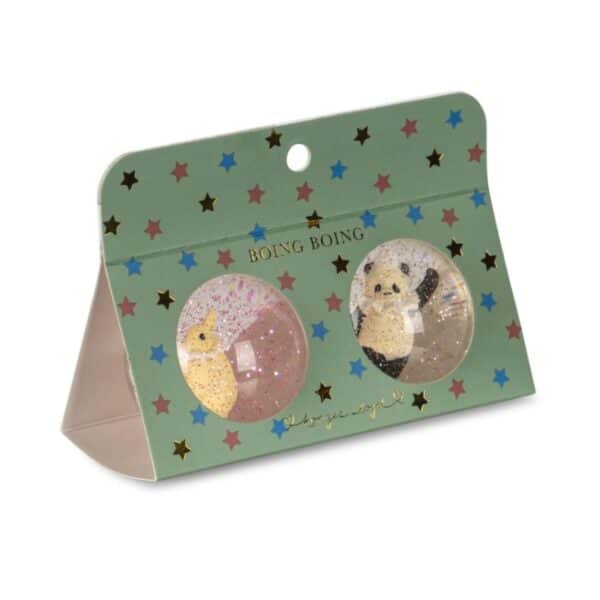 Met deze schattige stuiterballen van Konges Sløjd is plezier gegarandeerd! De set bevat 2 stuiterballen, elk met een speelse 3D-figuur erin verwerkt en gevuld met glitters die vrolijk meebewegen bij elke sprong.