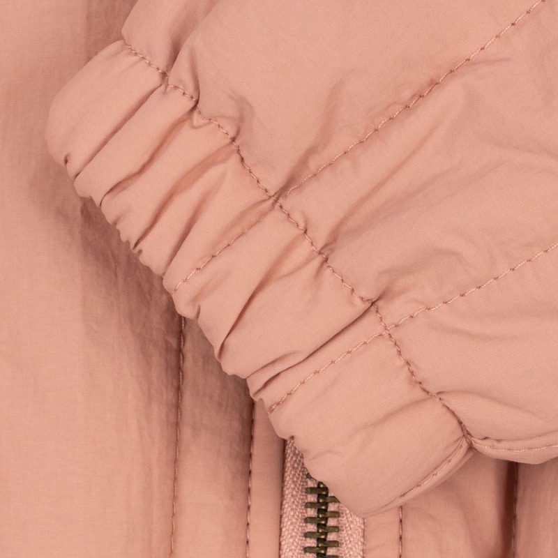 De zachte polyester vulling houdt je kind aangenaam warm zonder zwaar aan te voelen. Dankzij de fluorvrije BIONIC-FINISH® ECO coating is het thermojack windbestendig en waterafstotend, ideaal voor frisse dagen, tussenseizoenen en actief buitenspelen. De zachte roze kleur geeft de jas een warme, romantische uitstraling die zowel tijdloos als trendy is.