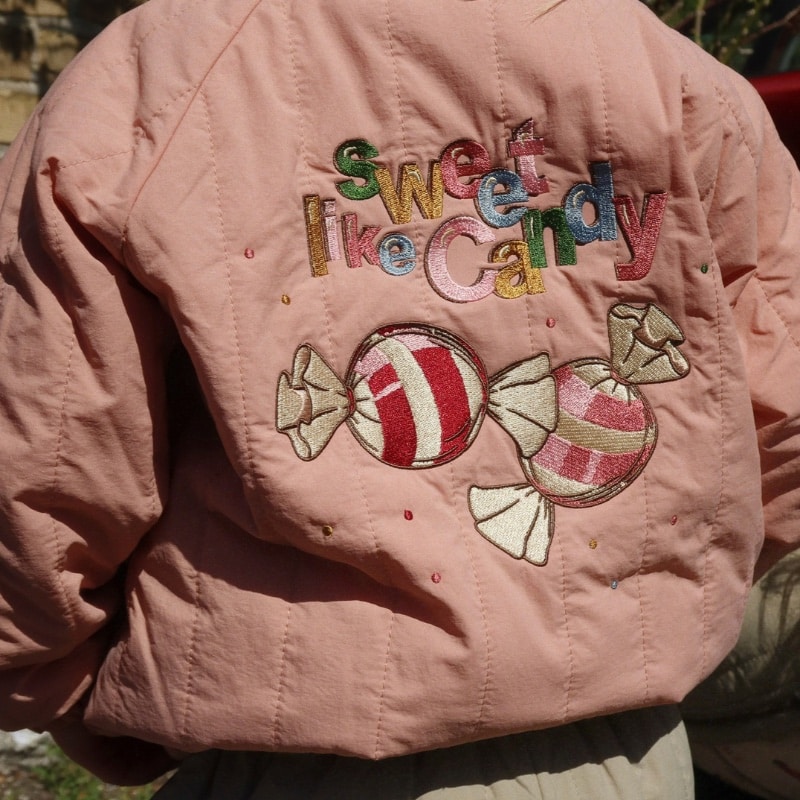 Deze uitvoering is afgewerkt met een subtiel geborduurd detail op de rug, wat zorgt voor een speelse maar elegante touch. Geen drukke prints, wel een verfijnde afwerking die perfect aansluit bij de rustige esthetiek van Konges Sløjd.