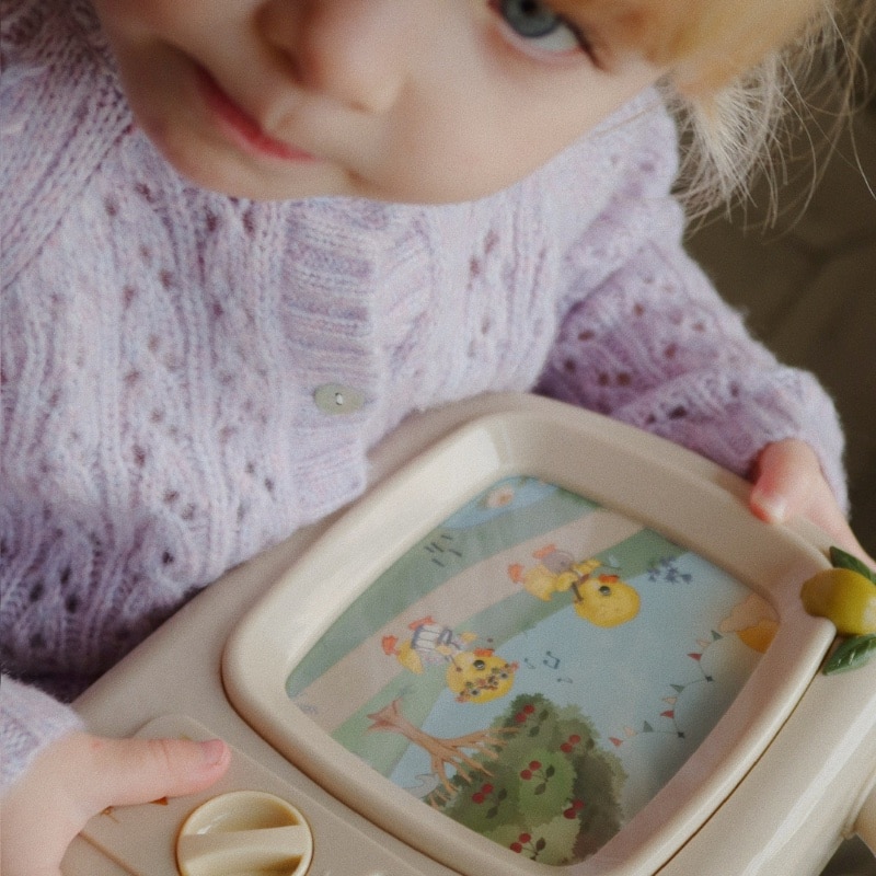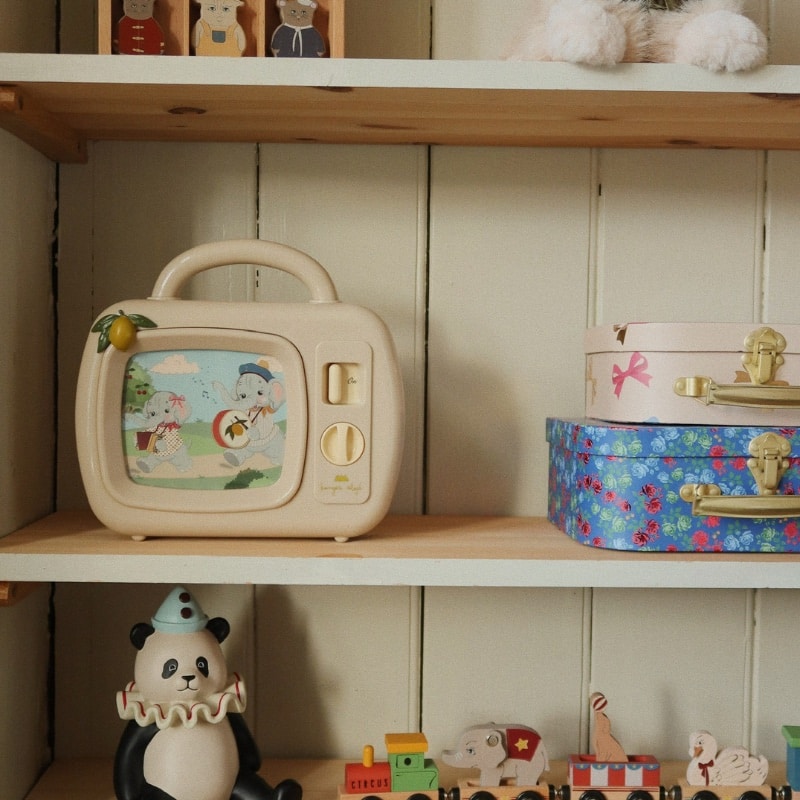 Deze kleine Melody TV van Konges Sløjd is een liefdevol stukje retro in de moderne kinderkamer. Ideaal om rustmomenten te creëren of om je kindje zelf muziek te laten ontdekken, zonder prikkels, maar mét betovering.