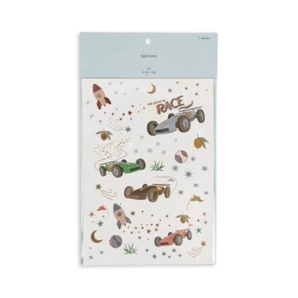 Hoe leuk zijn deze tijdelijke tattoos van Konges Sløjd? Heb je thuis een kleine fan van raceauto’s of wilde dieren? Dan is deze tattoo-set een echte hit!