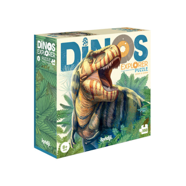 Brontosaurus, Tyrannosaurus, Velociraptor, Gallimimus… deze puzzel met 350 stukjes is een droom voor kleine (en grote) dino-fans! Ga op ontdekkingstocht door het prehistorische tijdperk met de prachtig gedetailleerde illustratie van Román García Mora, en leer onderweg alles over deze indrukwekkende dieren.