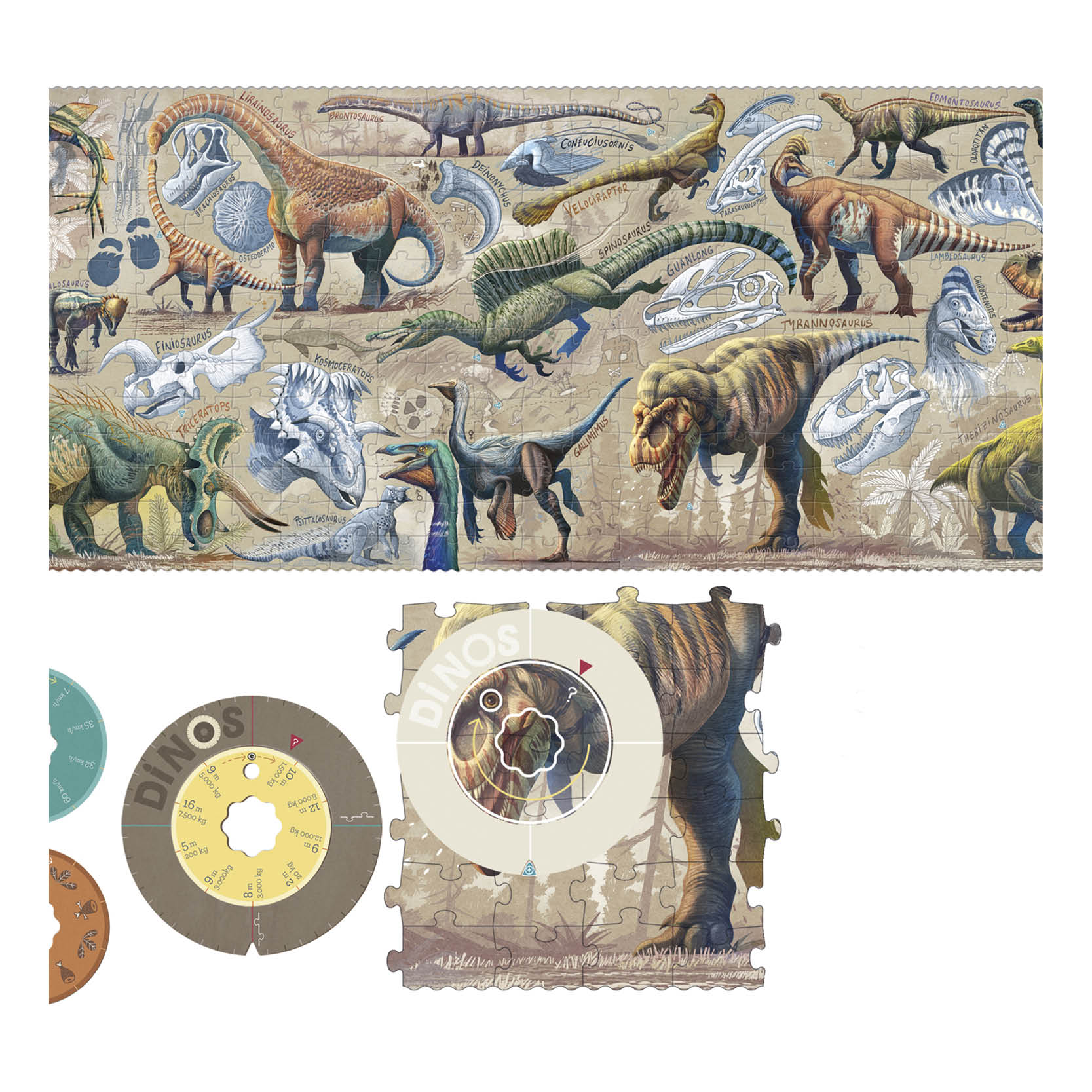 Deze puzzel is méér dan gewoon puzzelen. Kinderen leren spelenderwijs over wat dino’s aten, wanneer ze leefden en hoe groot ze waren. Dankzij de meegeleverde educatieve draaischijf kunnen ze zélf op zoek gaan naar info alsof ze voor één dag echte paleontologen zijn! Combineer spel en educatie: perfect voor nieuwsgierige kinderen vanaf 8 jaar die houden van uitdagingen én avontuur.