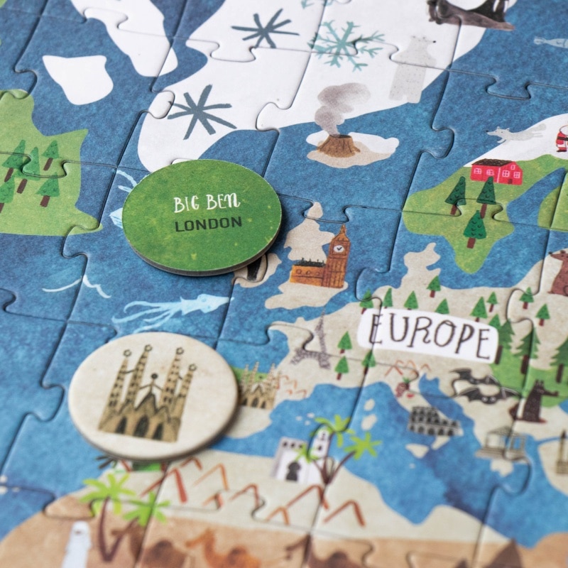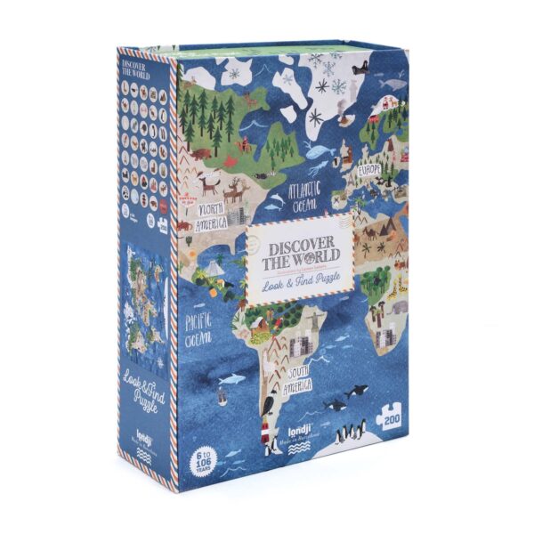Onze planeet zit vol wonderen van de Eiffeltoren tot Big Ben, van exotische dieren tot beroemde monumenten. Met deze prachtige 200-delige puzzel van Londji gaan kinderen op een wereldreis vanuit de woonkamer!
