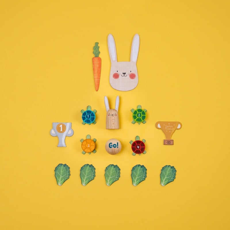 Er was eens een haas, sneller dan de wind en zeker van haar overwinning… Maar wat zij niet wist? De schildpadden hadden een geheim: samenwerking! In dit vrolijke coöperatieve spel van Londji leer je dat je met teamwork, strategie en geduld heel ver kunt komen misschien zelfs de race wint!