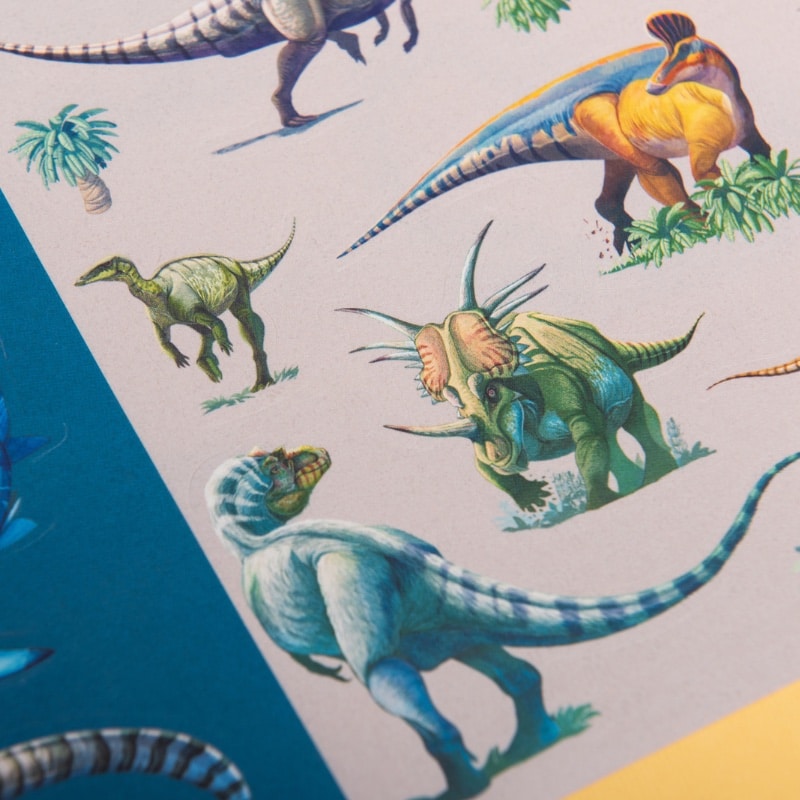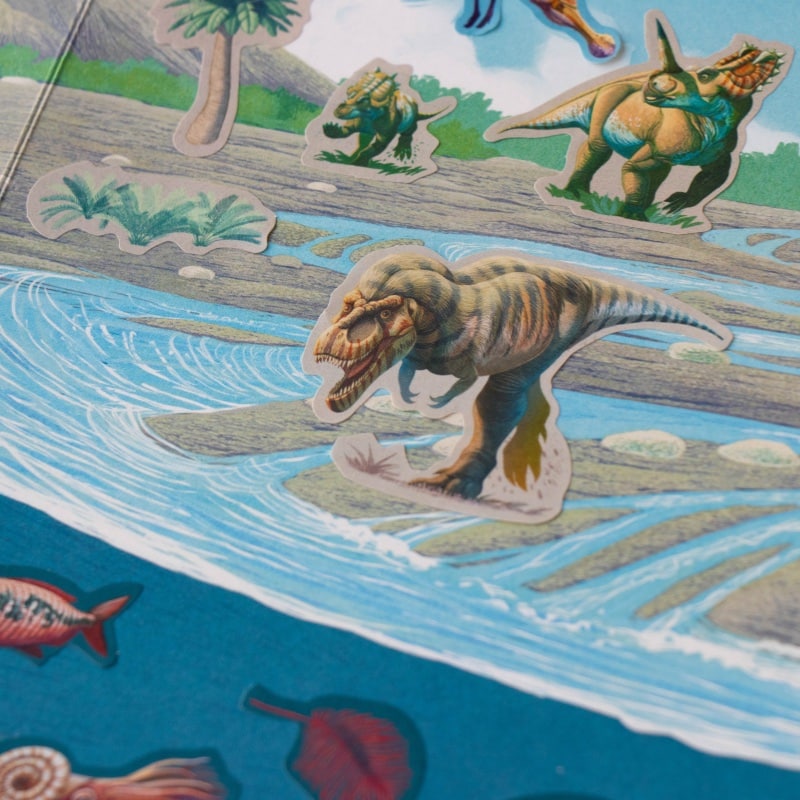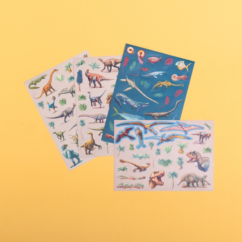 Deze stickerset stimuleert fijne motoriek, creativiteit en zelfstandig spel. Je kind leert spelenderwijs over dinosaurussen en oefent tegelijk met combineren, decoreren en verhalen verzinnen. En dankzij het platte formaat neem je hem makkelijk overal mee naartoe!