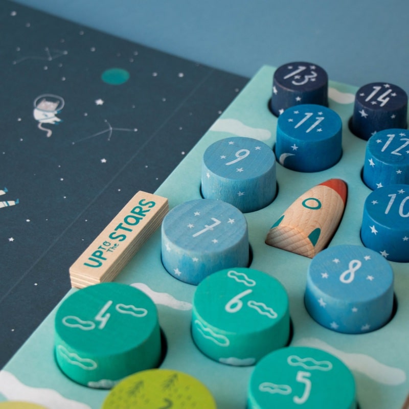 Je kind leert tijdens het spelen het verschil tussen groot en klein, getallen herkennen en stapelen met precisie. De houten opbergdoos is bovendien een vormenpuzzel: elk stuk past precies op de juiste plek. Mooi én praktisch ideaal als duurzaam educatief cadeau!