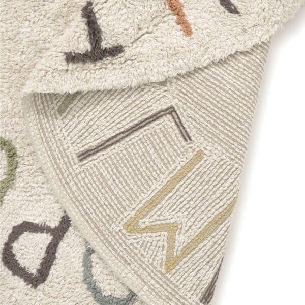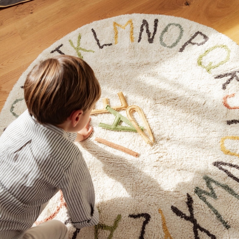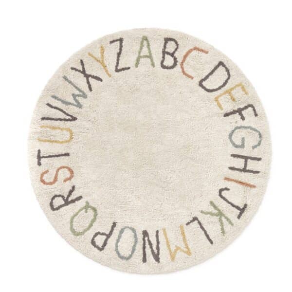 Dit speelse ABC speelkleed van Lorena Canals is speciaal ontworpen om kinderen op een leuke manier kennis te laten maken met letters. Het ronde kleed (Ø120 cm) heeft een zachte basis in natuurlijke en ivoorkleuren, met kleurrijk getufte letters die meteen de aandacht trekken.