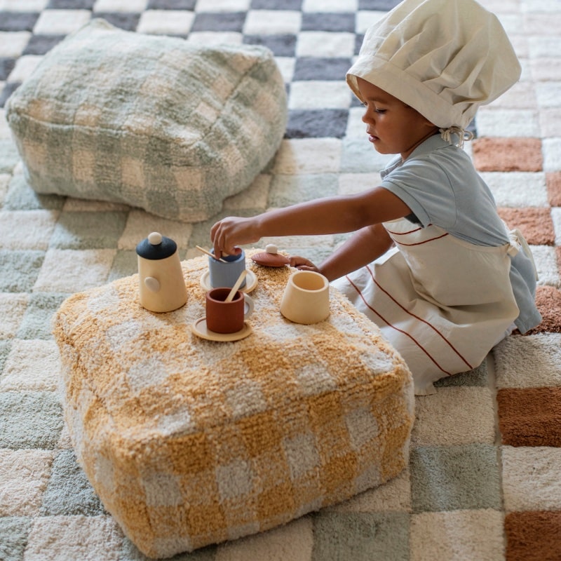 Een gezellige speelhoek begint bij de juiste details. De Lorena Canals Poef Vichy Blue Sage is zo’n detail dat meteen het verschil maakt: een zachte, pluizige poef in het iconische vichymotief, geïnspireerd op een vintage tafelkleed. Rond de kleine eettafel, in de speelkeuken of gewoon als extra zitje in de kinderkamer, deze poef past er moeiteloos in.