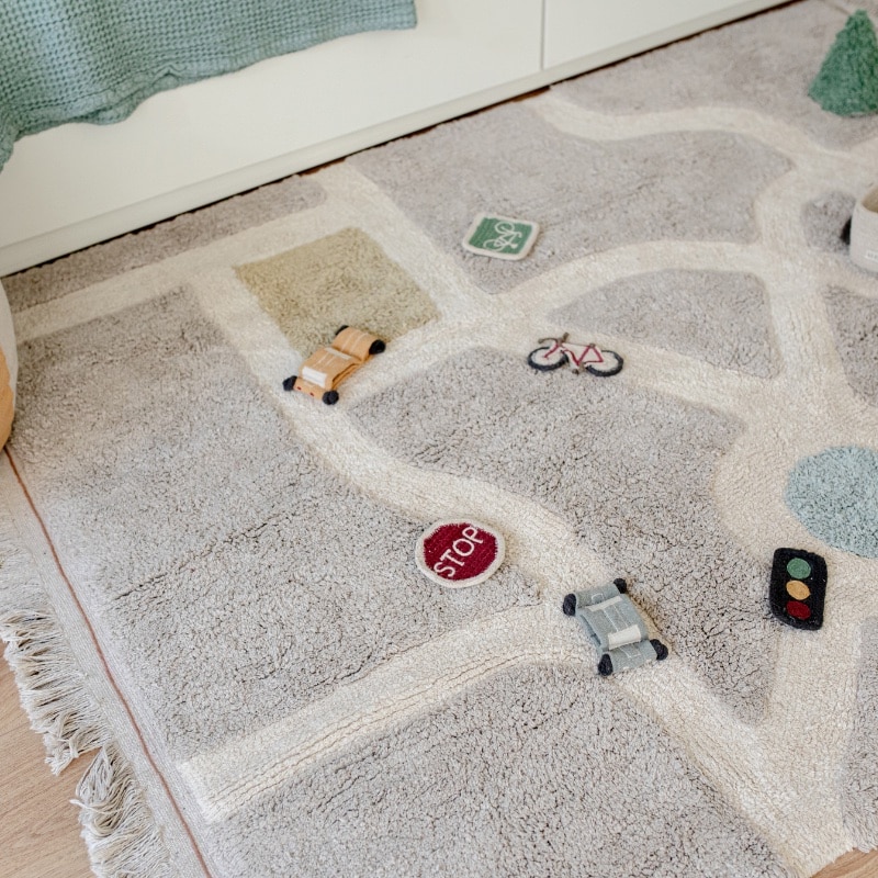Met het Eco-City stadsplattegrond speeltapijt van Lorena Canals breng je spel, stijl en duurzaamheid samen in één zacht pakket.