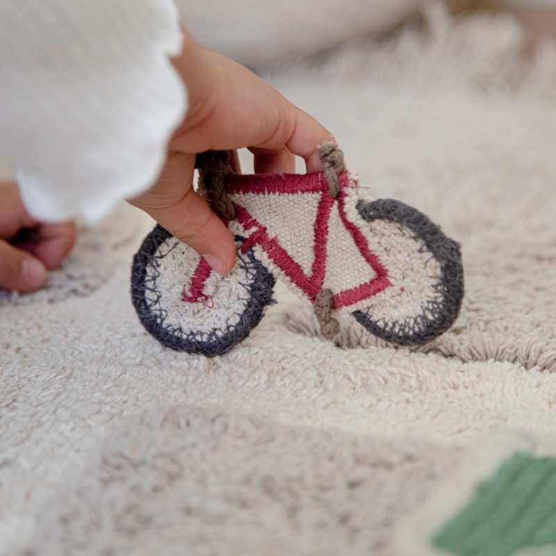 Welkom in een stad waar kinderen al spelend leren, waar elektrische wagentjes geruisloos rondzoemen en duurzaamheid centraal staat. Dit zachte, wasbare speelkleed in stadsdesign van Lorena Canals is dé plek waar fantasie en leerrijk spelen samenkomen.