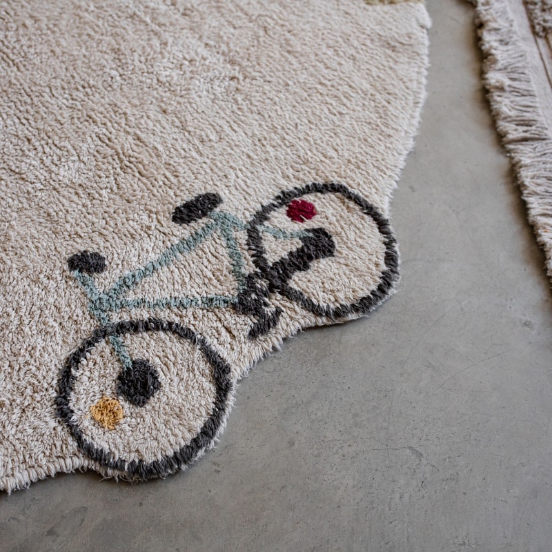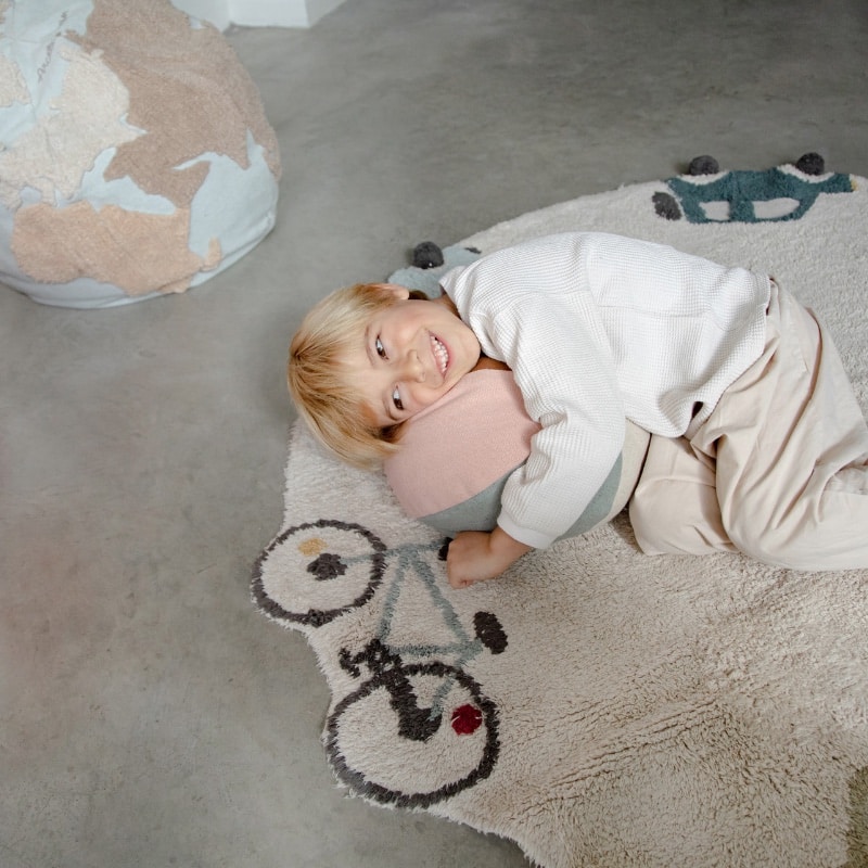 Laat de verbeelding van je kind de vrije loop met dit zachte, ronde én wasbare speelkleed van Lorena Canals. Het Eco-City vloerkleed staat vol met voertuigen en fietsen, afgewerkt met schattige pompons als wielen. Ideaal voor kleine autoliefhebbers en dromers!