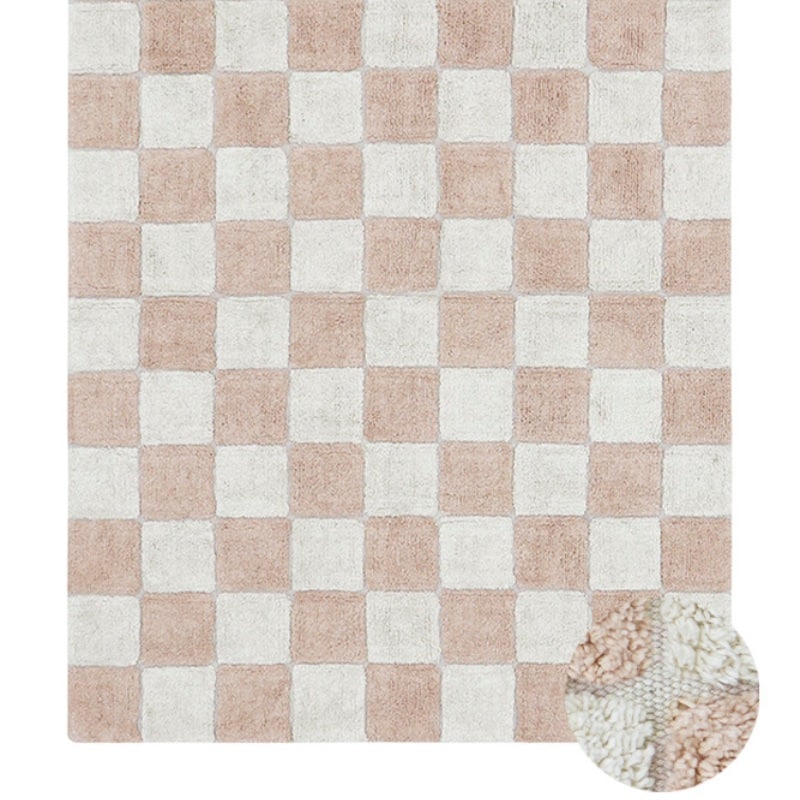 Breng een vleugje nostalgie in je interieur met dit unieke vloerkleed van Lorena Canals, geïnspireerd op het klassieke dambordpatroon van keukentegels. De zacht roze tint zorgt voor een zachte, tijdloze uitstraling die perfect past in elke ruimte van de woonkamer of slaapkamer tot de kinderkamer of speelhoek.