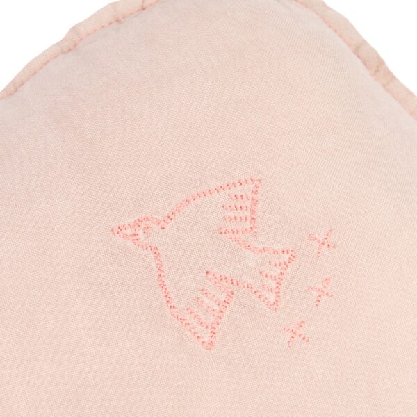 Voeg een vleugje poëzie toe aan de kinderkamer met het Nobodinoz L1N0 Cloud Kussen in powder pink, vervaardigd uit 100% Frans linnen. Dit sierkussen in de vorm van een wolkje is een prachtig decoratief accent. De fijne borduursels van een vogel in vlucht maken het extra bijzonder, een subtiele knipoog naar dromen en vrijheid.