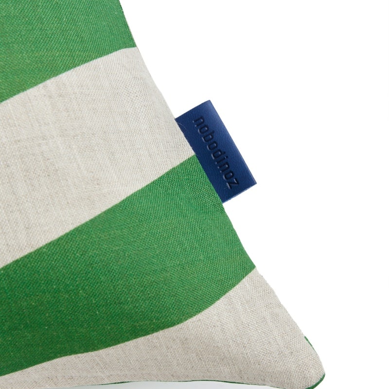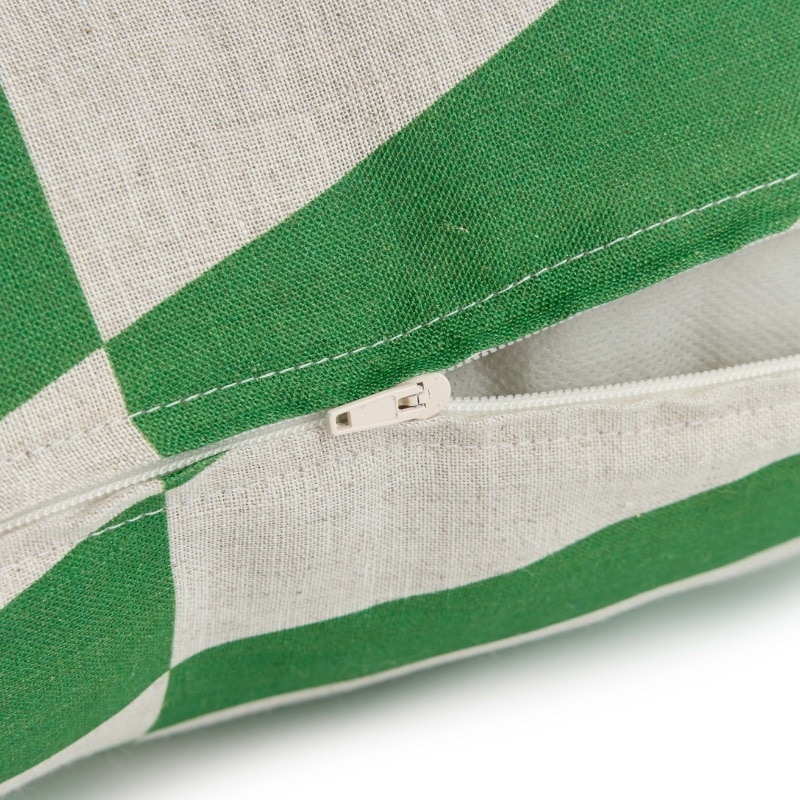 Het kussen is gedrukt op hoogwaardig Frans linnen, een natuurlijk en duurzaam materiaal dat bekend staat om zijn sterkte, soepelheid en tijdloze klasse. De hoes is afneembaar en kan gewassen worden.