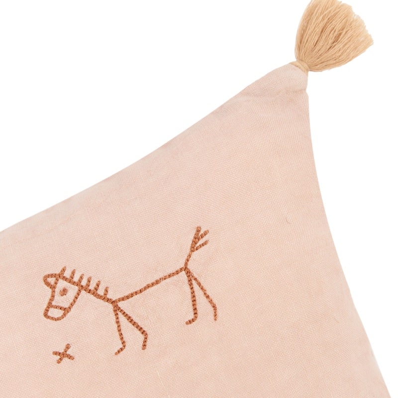 Met zijn subtiele borduursels en gewassen linnen textuur voelt het kussen niet alleen heerlijk zacht aan, maar straalt het ook rust en klasse uit. De speelse franjes aan de zijkanten zorgen voor een luchtig accent dat perfect past in zowel minimalistische als boho interieurs. Dit kussen heeft een zachte roze kleur, die je mooi kan combineren met beige, aardse tinten en zelfs met donkerblauw.