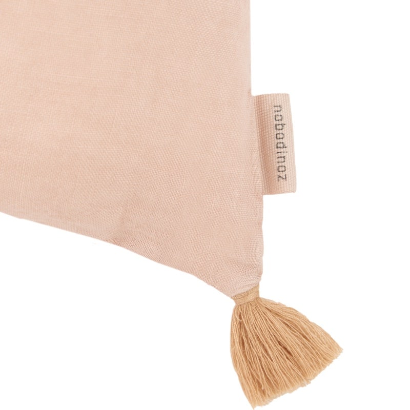 Ontdek de pure elegantie van Frans linnen met dit prachtig geborduurde sierkussen met franjes uit de exclusieve L1N0-collectie van Nobodinoz. Dit rechthoekige kussen brengt verfijning, zachtheid en natuurlijke schoonheid samen in één stijlvol accessoire voor je woon- of slaapkamer.