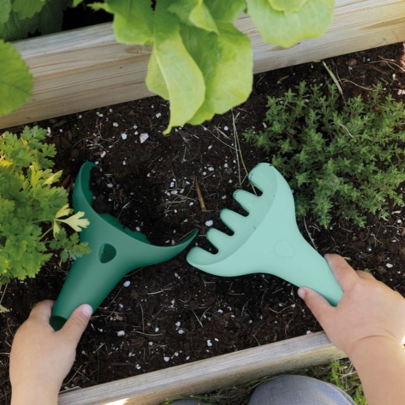 De set bestaat uit de Cana gieter, de Raki schep en hark en een strandbal. Dankzij het slimme design van Quut kunnen kinderen de tools op verschillende manieren gebruiken, wat het spelen extra creatief maakt.