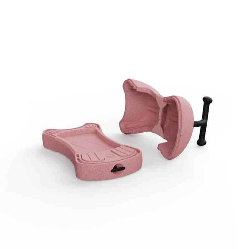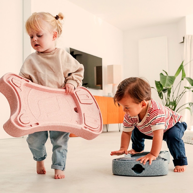 De plaat kan ook apart gebruikt worden. Kindjes kunnen erop zitten of liggen en zichzelf voortduwen. Dat stimuleert creativiteit, motoriek en lichaamsbesef op een speelse manier.