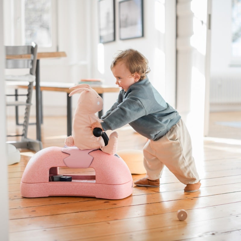 Een doordachte eerste ride on die perfect past in een warm gezinsleven waar spelen en ontwikkelen hand in hand gaan.