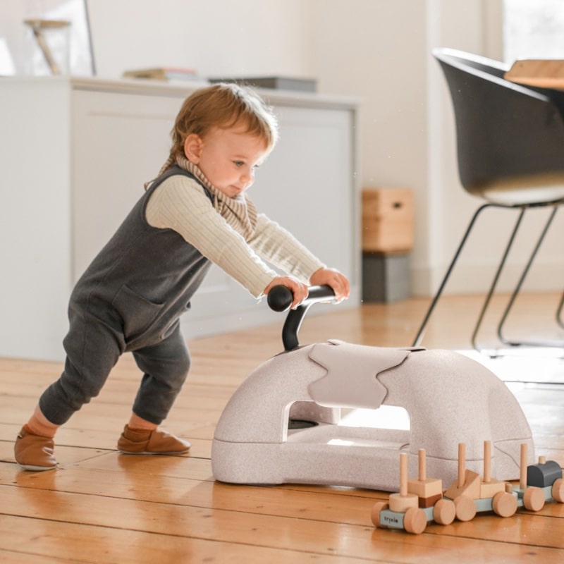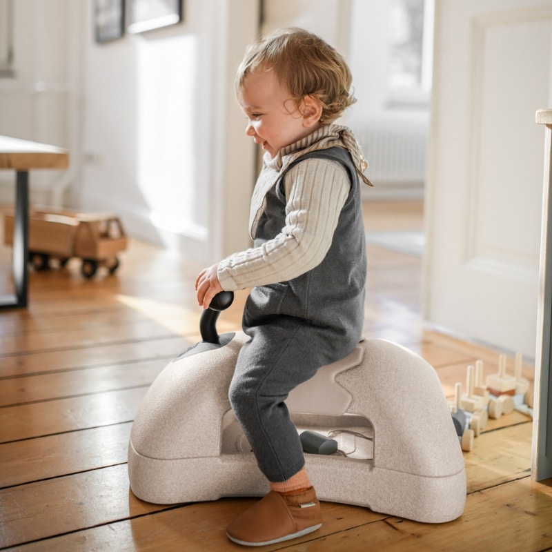 Een doordachte eerste ride on die perfect past in een warm gezinsleven waar spelen en ontwikkelen hand in hand gaan.