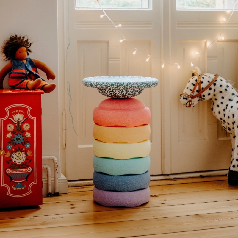 Bij Basile & Ray geloven we dat kinderen leren door te spelen én te bewegen. Het Duitse merk Stapelstein sluit daar perfect op aan. Hun kleurrijke stapelstenen nodigen kinderen uit om te springen, bouwen, balanceren en fantaseren, eindeloos veelzijdig en geschikt voor binnen én buiten.