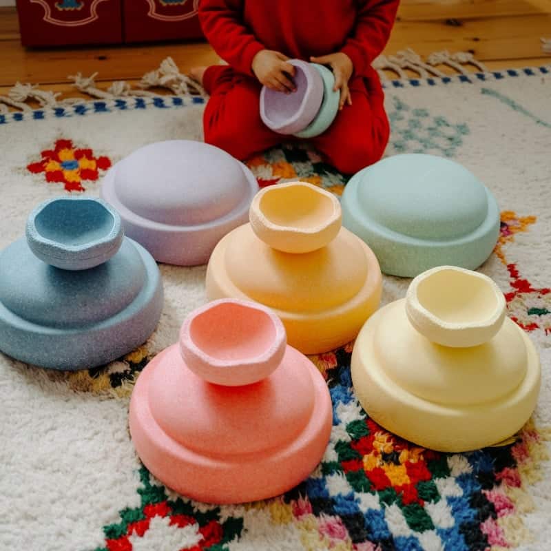Bij Basile & Ray geloven we dat kinderen leren door te spelen én te bewegen. Het Duitse merk Stapelstein sluit daar perfect op aan. Hun kleurrijke stapelstenen nodigen kinderen uit om te springen, bouwen, balanceren en fantaseren, eindeloos veelzijdig en geschikt voor binnen én buiten.