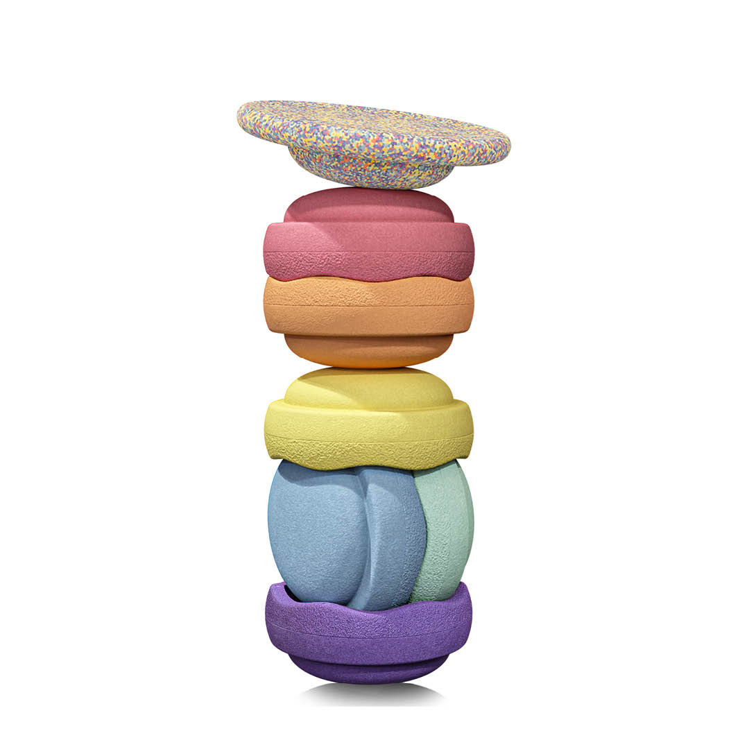 De Stapelstein Pastel Set bevat 6 stenen in prachtige pastelkleuren én een vrolijk confetti balance board om de set compleet te maken. Dé perfecte combinatie om eindeloos te stapelen, balanceren en fantasierijk te spelen.