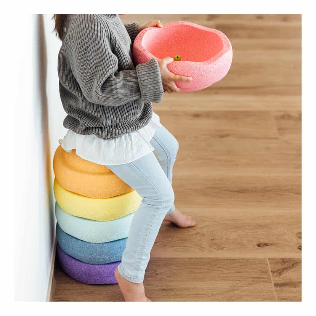 De Stapelstein Pastel Set bevat 6 stenen in prachtige, zachte tinten die zorgen voor eindeloos speelplezier. Of je kindje nu een stoeltje bouwt, ‘de grond is lava’ speelt, balanceert of een fantasierijk parcours maakt met deze set kan het allemaal!