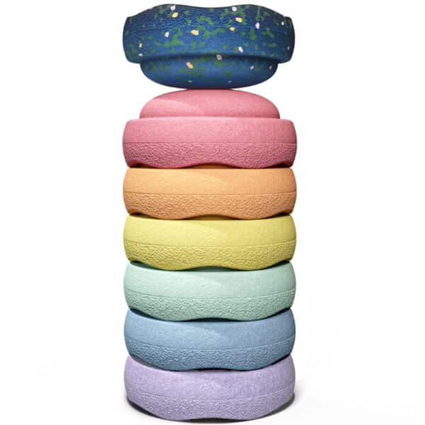 Bij Basile & Ray geloven we dat kinderen leren door te spelen én te bewegen. Het Duitse merk Stapelstein sluit daar perfect op aan. Hun kleurrijke stapelstenen nodigen kinderen uit om te springen, bouwen, balanceren en fantaseren, eindeloos veelzijdig en geschikt voor binnen én buiten.
