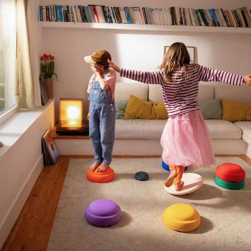 Met deze Stapelstein stapelstenen set kunnen kinderen eindeloos experimenteren: stapelen, evenwichtsoefeningen doen, parcours bouwen of spelletjes zoals de vloer is lava spelen. Het balance board maakt het spel extra uitdagend en stimuleert motoriek, balans en creatief denken.