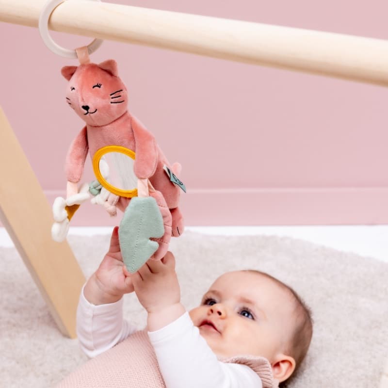 Vandaag gaat Mrs Cat overal mee naartoe. Dit activiteitenspeeltje van Trixie zorgt voor eindeloos speelplezier dankzij zijn rammelende kralenring, ritselpapier, een kiekeboespiegeltje en grappige trekkoordjes. Er valt van alles te ontdekken en te voelen, perfect voor nieuwsgierige babyhandjes.