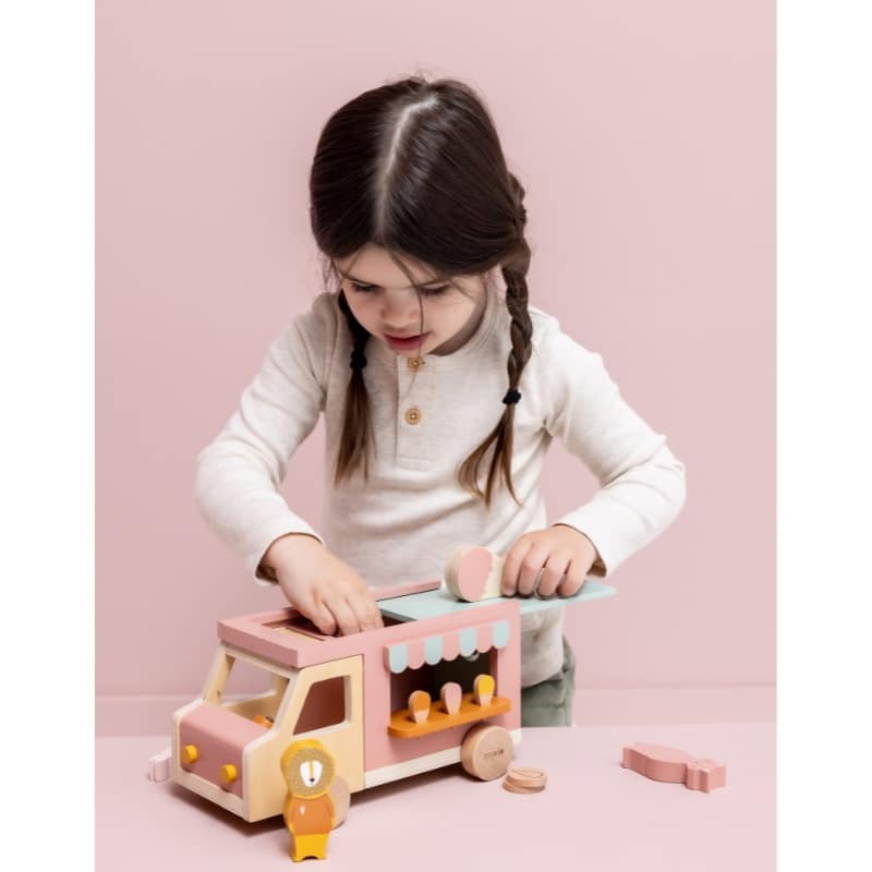 Deze houten ijskar is veel meer dan gewoon speelgoed. Het prikkelt de fantasie en moedigt kinderen aan tot rollenspel, terwijl ze spelenderwijs hun fijne motoriek en sociale vaardigheden oefenen. Ideaal voor nieuwsgierige kleuters vanaf 3 jaar.