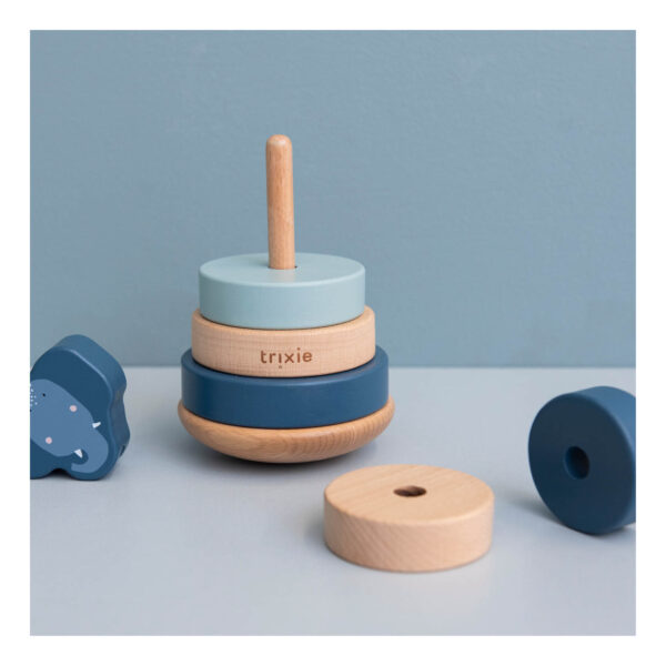 Een houten stapeltoren is een échte musthave in de speelgoedcollectie van je kindje! Deze mooie stapeltoren van Trixie heeft een wiebelende basis, waardoor het stapelen een extra uitdaging wordt en je kindje spelenderwijs leert balanceren.