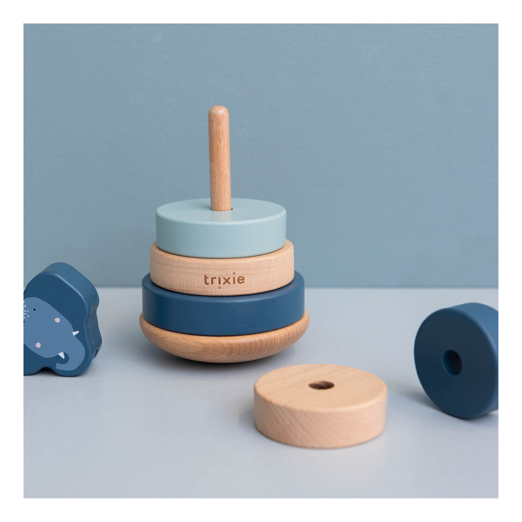 De stapeltoren is gemaakt van 100% FSC®-gecertificeerd beukenhout en afgewerkt met veilige verf op waterbasis – duurzaam, stevig en volledig babyproof.