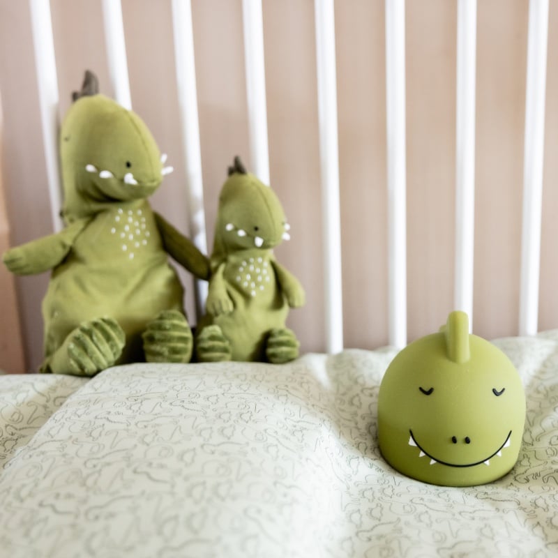 Ga slapen met je favoriete dierenvriendje van Trixie. Mr Dino houdt je kindje wanneer je hij/zij moet gaan slapen. De nachtlamp is gemaakt uit 100% zachte siliconen en heeft verschillende lichtintensiteiten. De intensiteit van het licht pas je heel makkelijk aan door op het hoofd van Mr Dino de tikken.